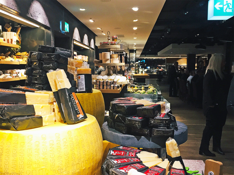 The location is unusual for a fine dining meal – the Globus Delicatessa department. In the middle of the store shelves filled with the most exquisite delicacies, fruits, vegetables and wines, white-laid tables are waiting for the guests. During the champagne aperitif with delicious nibbles, the last shopping customers left the shop, and the lights were dimmed. After the welcoming words by the store manager, the star of the evening introduces himself – Roger Kalberer.