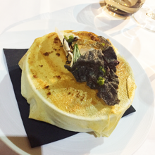 Poached trout from the Weisstannen valley in Brik pastry, Madras curry, and lemongrass