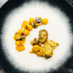 There is a healthy competition between us, which drives us to experiment and to reach beyond our limits. Denise has an edge on creating subtle, yet complex sauces and I exceed in plating. It’s a mutual respect that lets us create menus together. Denise and I both like to cook with seasonal and preferably locally sourced produce; hence we made the most of what the autumn season in Switzerland has to offer. Since I posted photos of the menu on my social media, a few friends ask me about the ingredients and description of each of the plates – so let me elaborate.