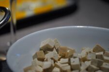 Some of the dishes on the menu were classics like Ceasar's Salad or «Züri Geschnetzeltes» that generally contain meat. Of course, the meat was substituted with vegetarian alternatives. Instead of little pork cubes for the salad smoked tofu was used, and the veal was replaced with Seitan, wheat gluten made from the main protein of wheat.