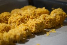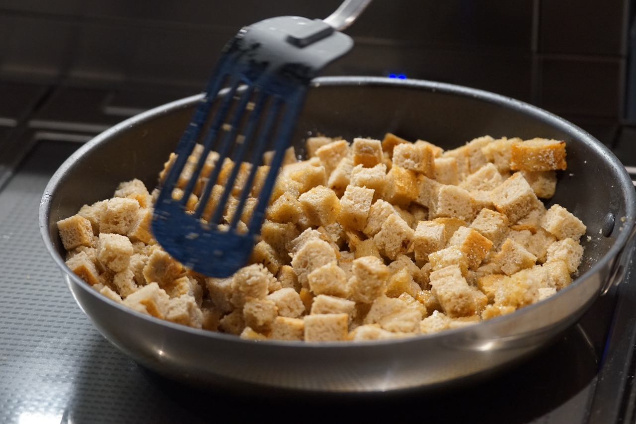 Our group was given the task to prepare the Zurich classic «Züri Geschnetzeltes». We made the dish the same way as the classic except for the veal. The Seitan was pre-prepared like omelets, and I cut them into bite-size pieces – like sliced meat.