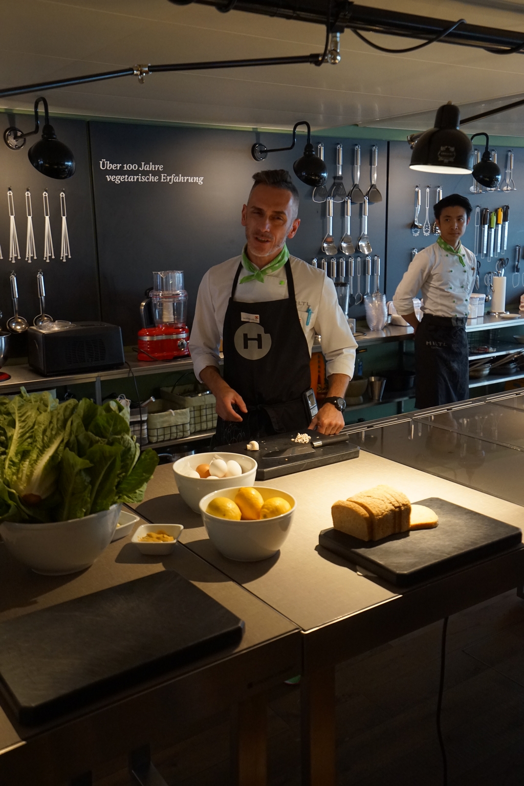 Working as a graphic designer, I get many customer relation perks from companies I work with, but this one was special and spot-on for me – you guessed it, a cooking event. Nico Staeger, the representative of the paper company Antalis, invited my friend Rita Capiaghi and myself to the Restaurant Hiltl in Zurich – according to Guinness World Records, the oldest vegetarian restaurant in the world. It was founded in 1898 as «Vegetarierheim & Abstinenzcafé» – to attend an evening cooking workshop. It turned out to be a fun experience and very educational too.