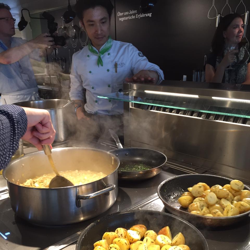 A surprise was to meet my friend chef Wolfgang Potzman – he and his team were giving the workshop. After a few introductory words about vegetarian food, it was hands-on in the academy kitchen. The attendees got divided into smaller groups, and each given different recipes to prepare and cook.