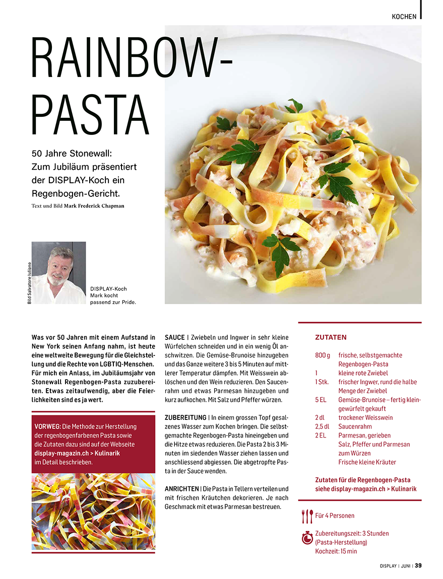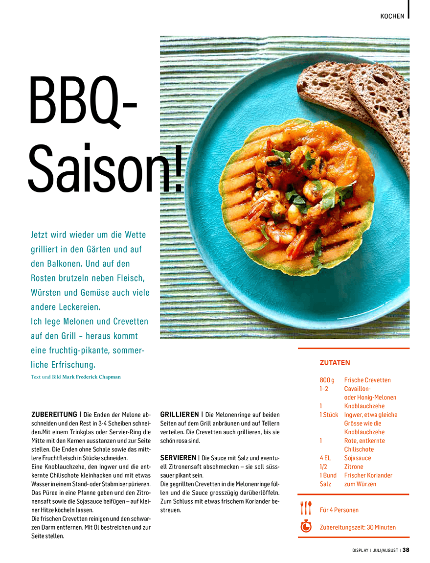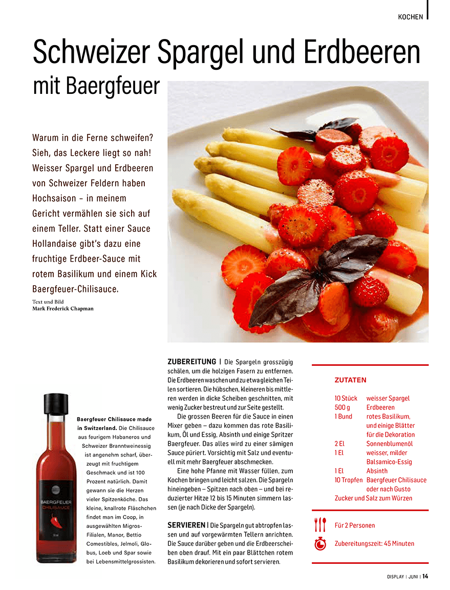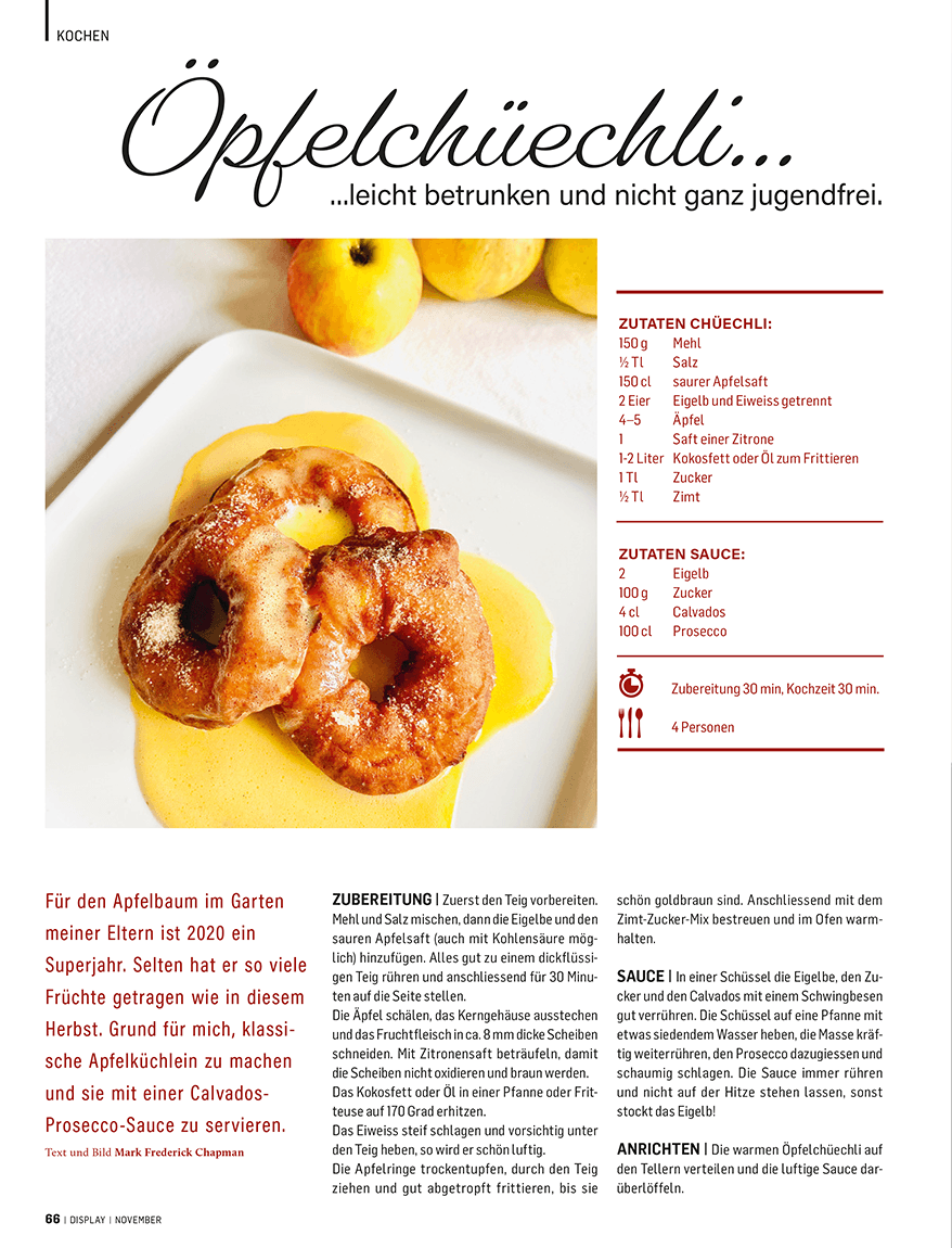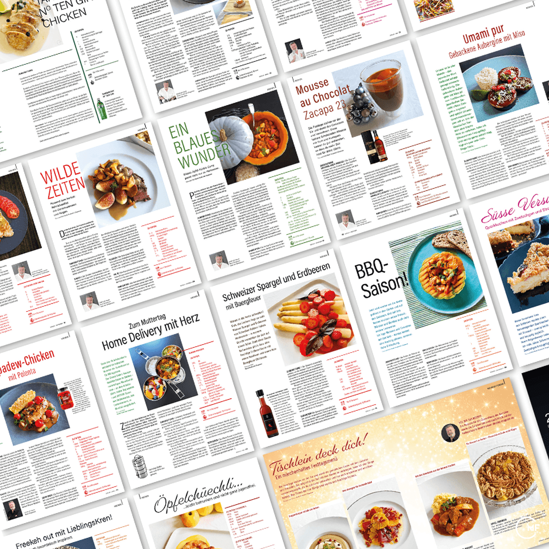 The recipes are published in the Swiss-German magazine Display, and therefore in the German language, you can find all recipes on this website in English.