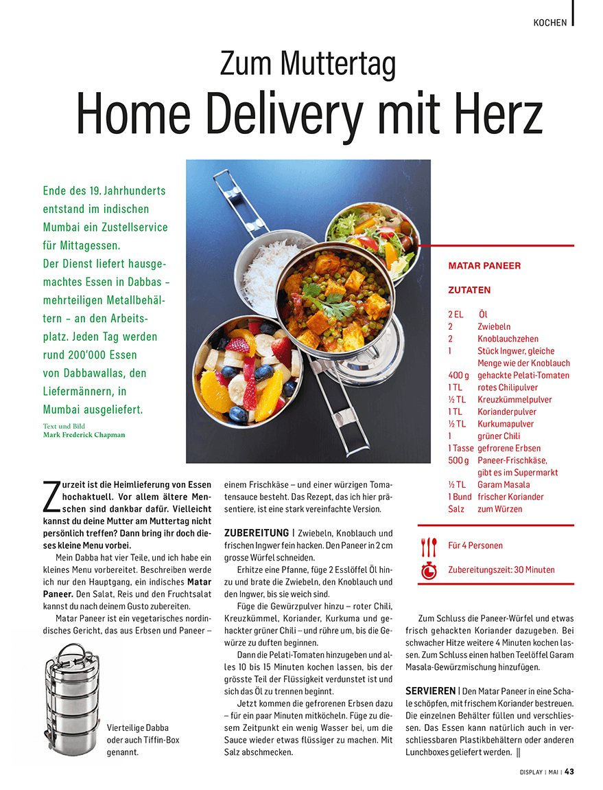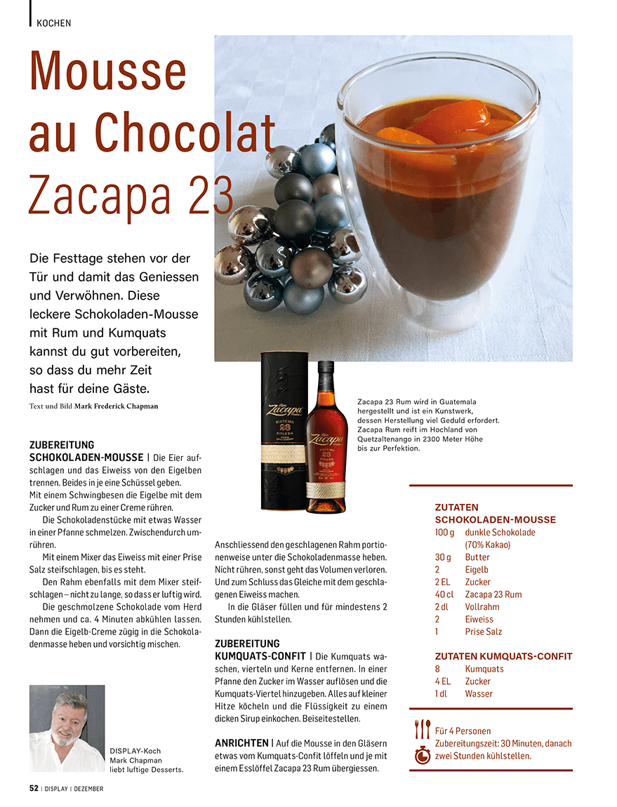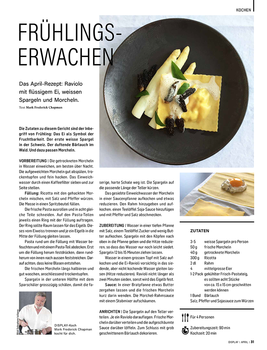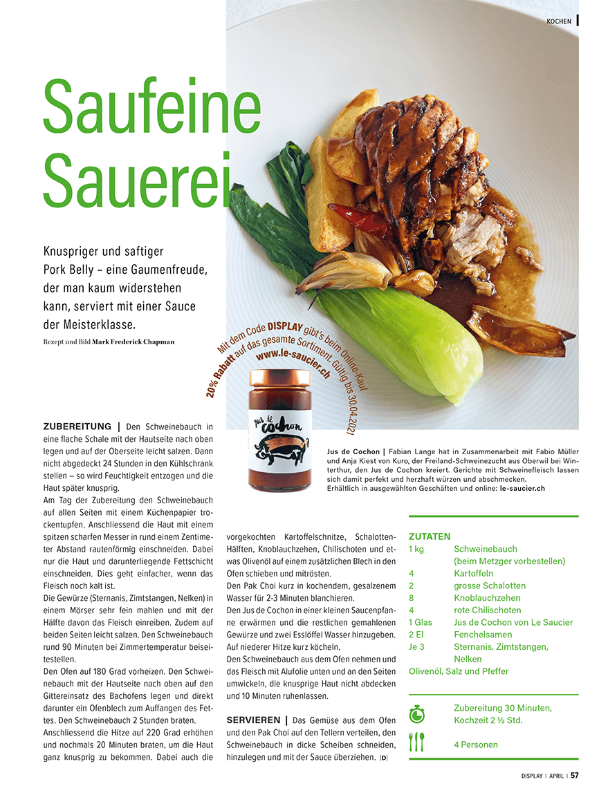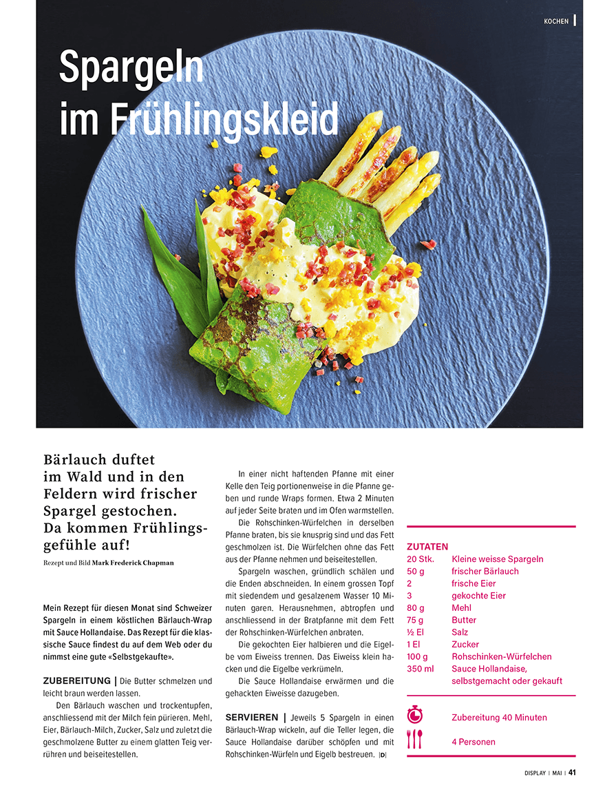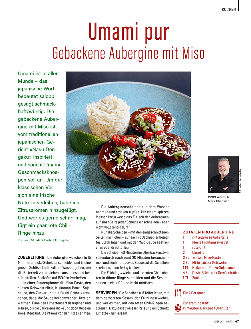 The recipes are published in the Swiss-German magazine Display, and therefore in the German language, you can find all recipes on this website in English.