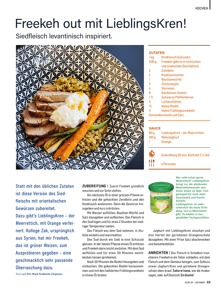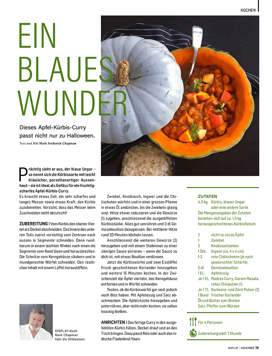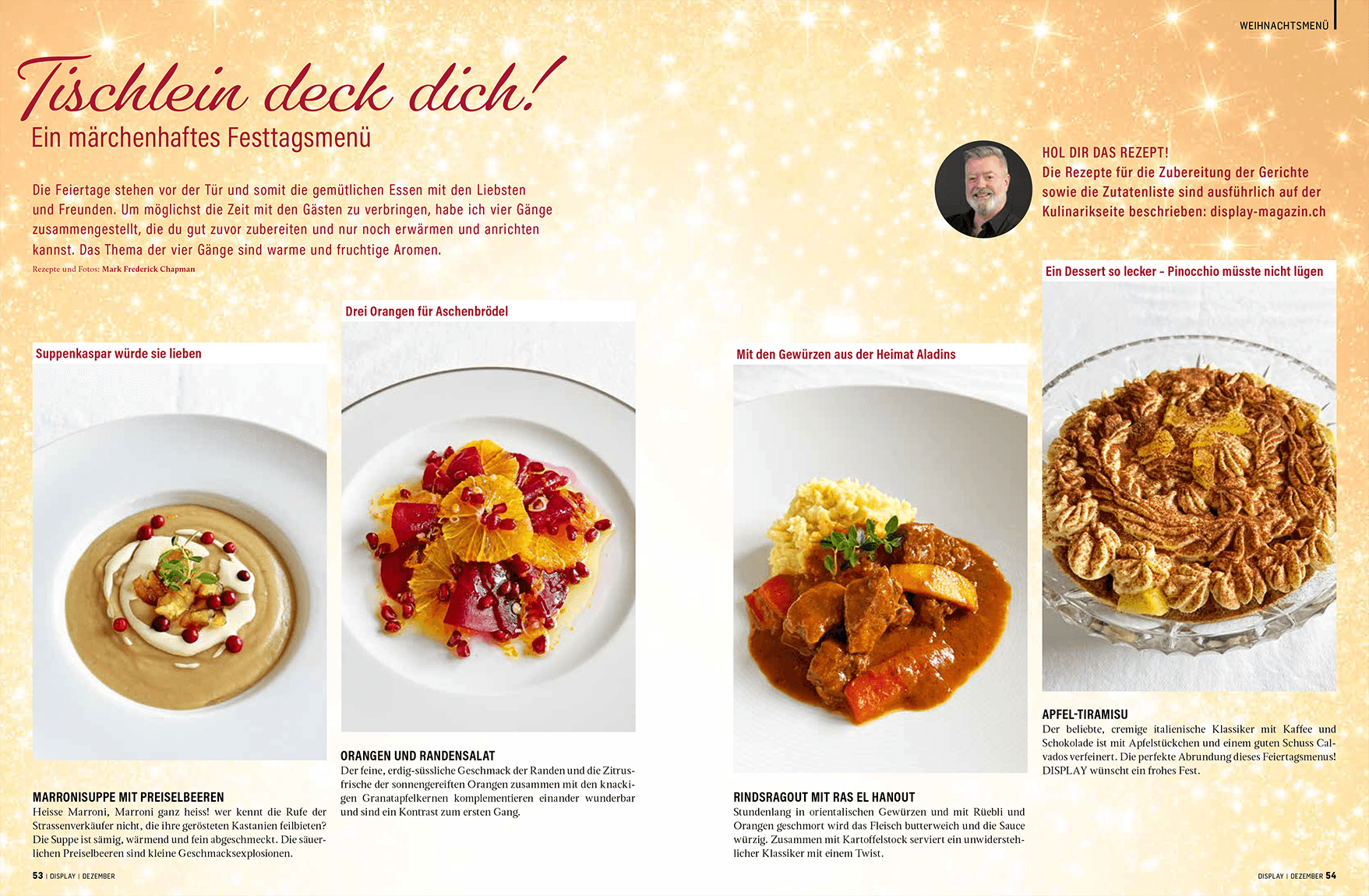 Over the past two years, I have written and photographed more than twenty recipes for Display Magazin. Between the issues, I have a month time to come up with something new, seasonal and, of course, mouthwatering. So far, the response from readers has been favourable, and I get positive feedback – that's what keeps me going.