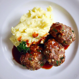 Inspired by my grandmother's cooking: «Hacktätschli» with potato mash and rich gravy; fried fish with potatoes and parsley sauce; rice pudding with prunes compote and dusted with cinnamon-sugar, scones with whipped cream and raspberry jam; and the traditional family Christmas pudding, past down over generations.