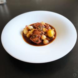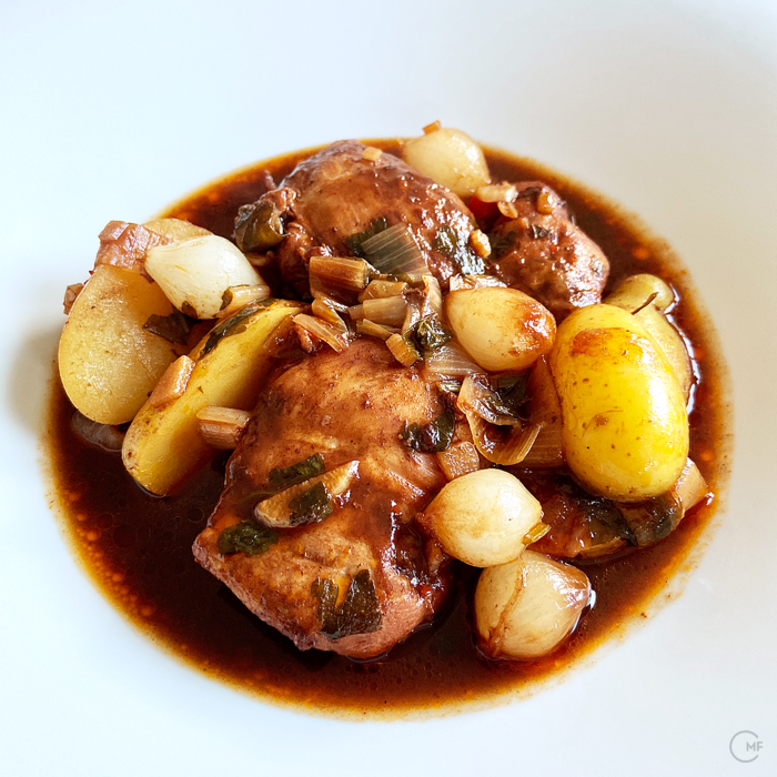 Coq au vin is a French classic chicken stew, slowly braised in red wine. You will find hundreds of authentic recipes on the web – this is mine. I varied with some of the ingredients, yet I am confident you will love the result.