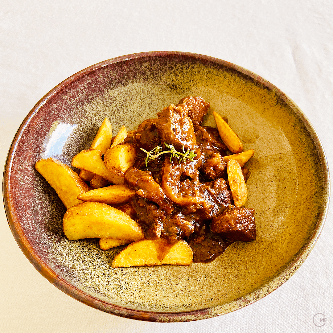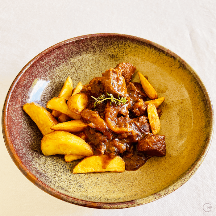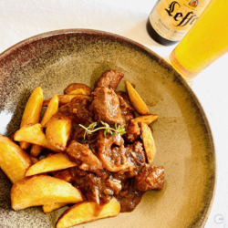 Belgium has some of the best beers in the world and that is, I would say, common knowledge. So it is only logical, they have dishes including beer. Stoofvlees a Flemish beef stew with chips is one of them. It reminded me of the French Beef Bourguignon yet instead of wine it's braised in dark beer. I love the rich flavour and with crunchy chips and a Belgian beer, it's a hearty feelgood dish.