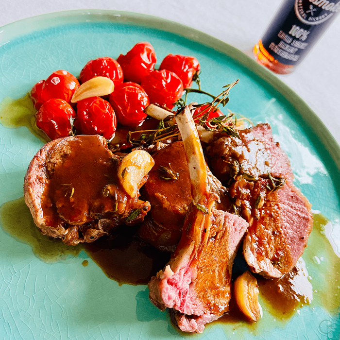 I served the sauce with lamb cuttles. I quickly seared in a skillet and then wrapped in aluminium foil and put in the oven for 15 minutes with the roasting tomatoes.