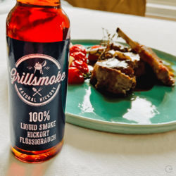 If you like the distinct smokey flavour, your meat and vegetables get from a barbecue grill or smoker, but none is available? Then I have a tasty alternative for you. Using Grillsmoke, I made a barbecue sauce and refined it with liquid smoke to achieve that desired smokey flavour. The unique taste from hickory wood smoke gives the sauce that specific something. Grillsmoke is distilled hickory smoke, made without any additives and is vegan.