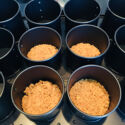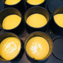 - Divide the mixture into six small backing forms (see the picture) or one larger baking form of 200 mm diameter.