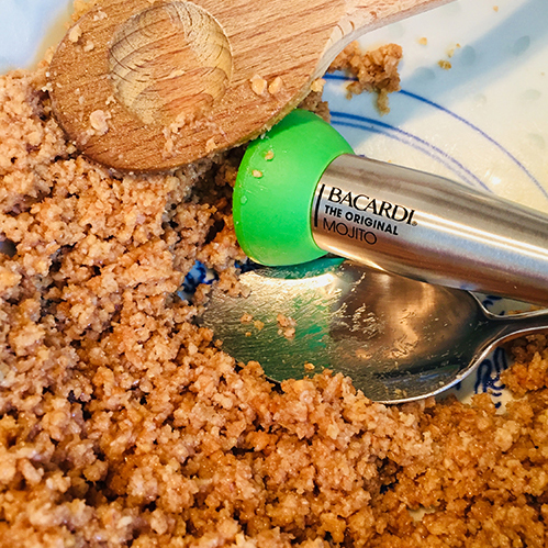 - Flatten den mixture evenly out by using a spoon or mortar.