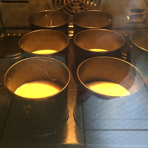 Pour the filling equally onto the bases or the larger base. - Bake in the oven at 140° C for 1 hour or until the filling is firm to the touch.