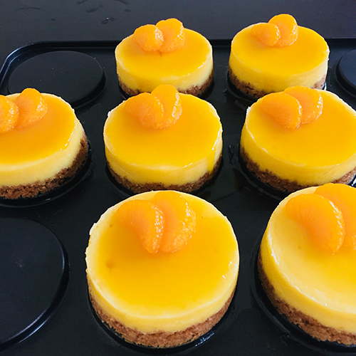 Serving | remove the cheesecakes from the forms and spoon the mandarin reduction on top. Decorate with 2-3 mandarin wedges and some small mint leaves.