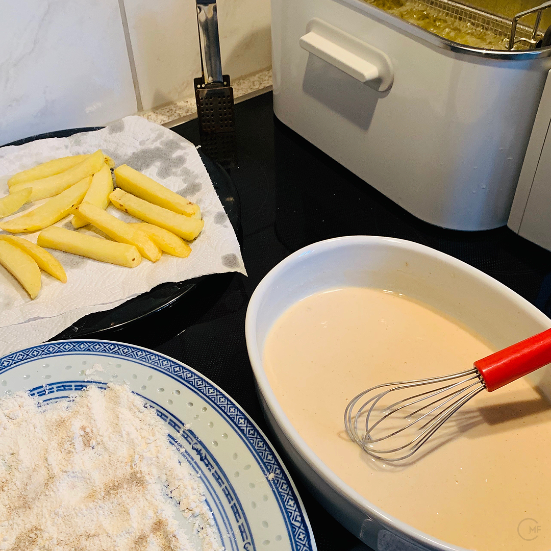Preheat the oven to 150 ° C. Heat the frying oil in the fryer at 130 ° C. If you use a pan, I recommend a cooking thermometer.