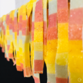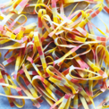 - Arrange the cut linguine strips alternately on the lightly moistened base dough. Carefully roll it again through the pasta machine on levels 4 to 6 so that the strips and the base dough are firmly connected. Then cut the finished, colorful dough sheet with the machine into Linguine. Hang the pasta over a wooden stick and dry until ready to use.