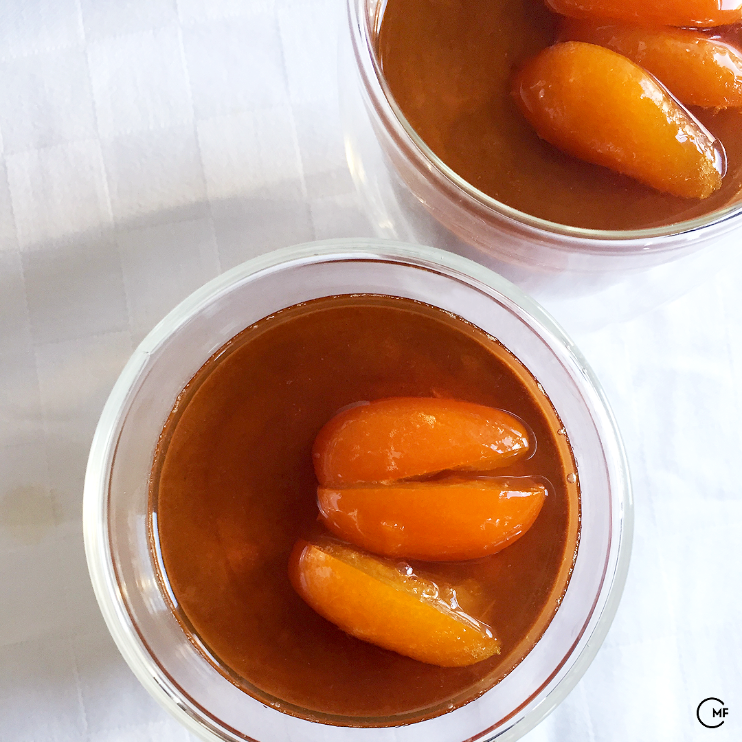 Serve | On the mousse in the glasses spoon some of the Kumquats Confit and one tablespoon of Zacapa 23 rum over the top.