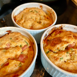 Fill the mixture into the ramekins and bake the them until golden – about 30 to 40 minutes.